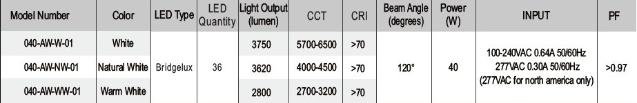 High performance aluminum heat sink specifically designed for LED, ensure best heat dissipation.